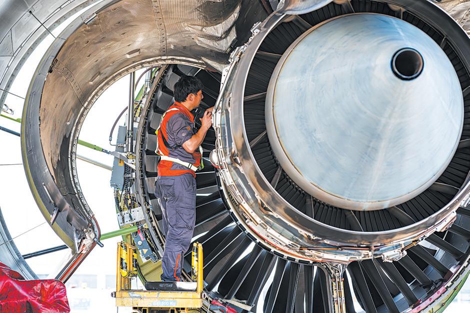 7月17日,机务人员从机库走出,准备对定检飞机进行保养检修。
