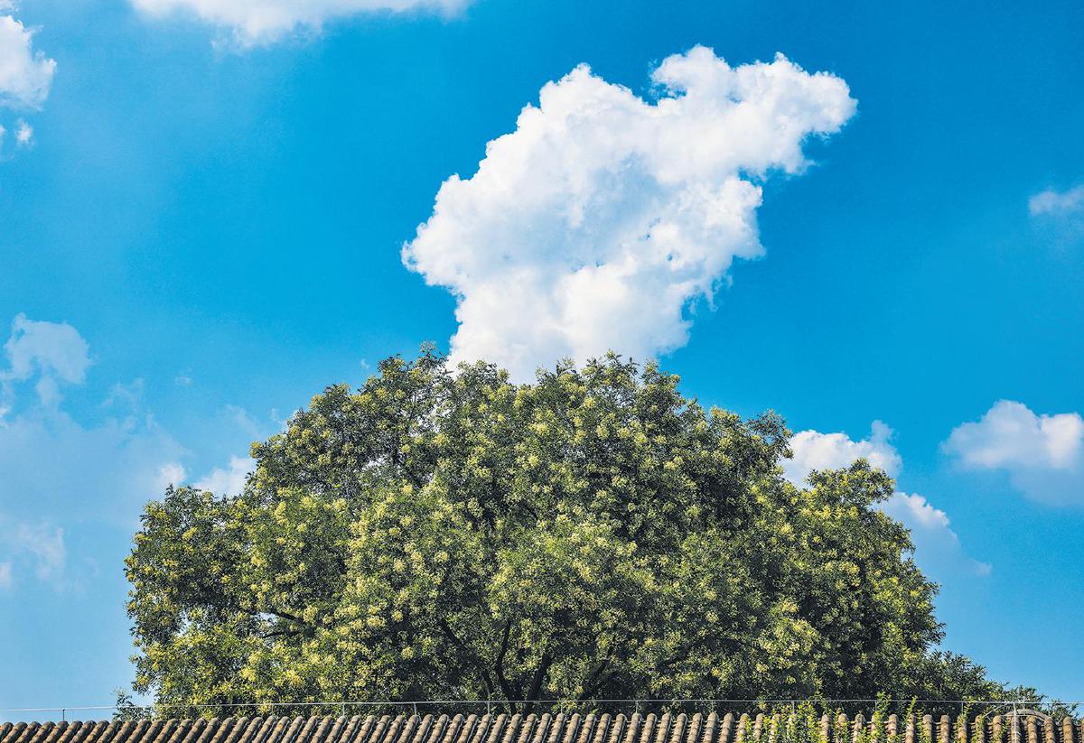 场景:盛开的槐花上空,涌起的高温云。 新京报记者 浦峰 摄