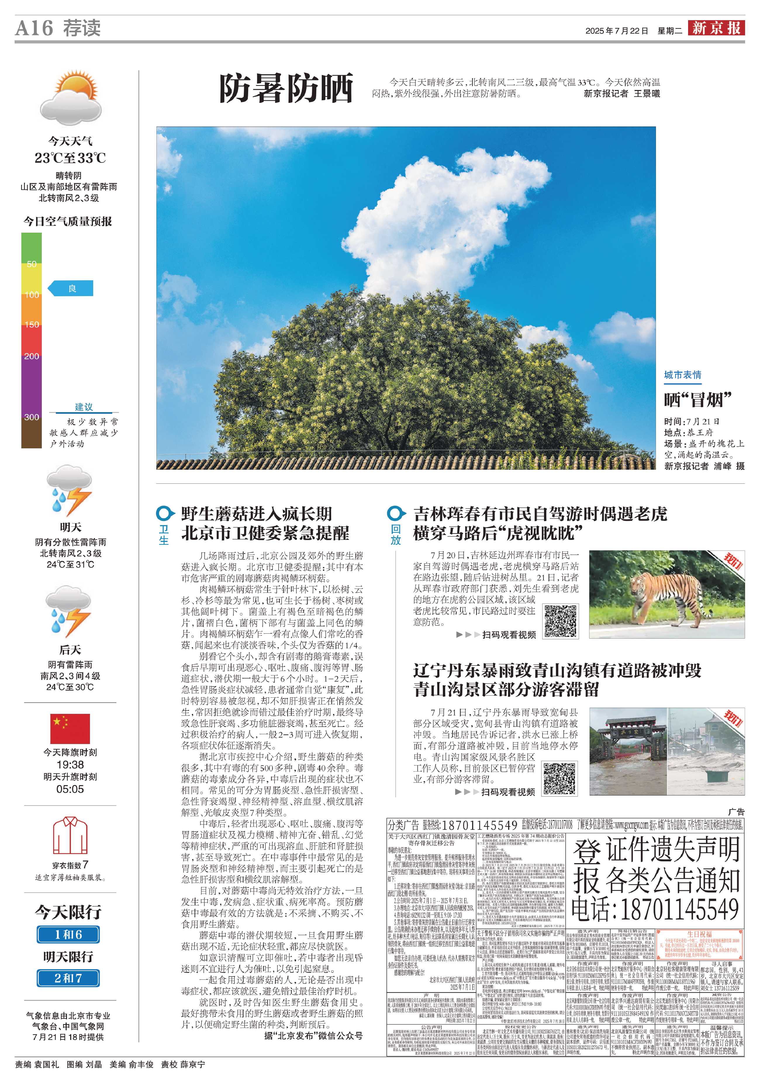 就医时,及时告知医生野生蘑菇食用史。最好携带未食用的野生蘑菇或者野生蘑菇的照片,以便确定野生菌的种类,判断预后。据“北京发布”微信公众号