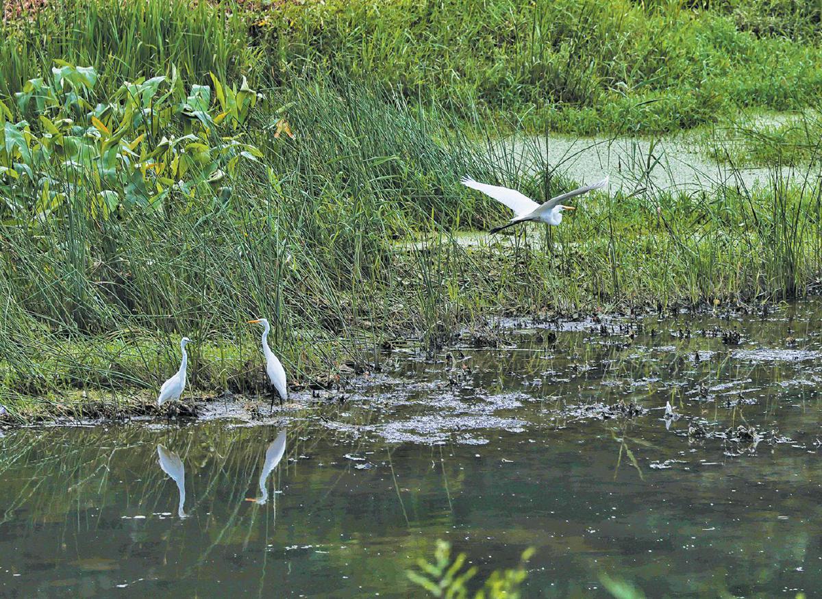 场景:鸟儿在河道中休憩、飞舞。 新京报记者 陶冉 摄