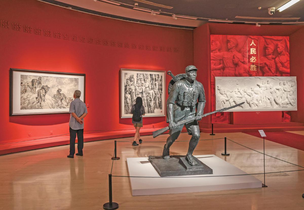 8月25日,“人民必胜——纪念中国人民抗日战争暨世界反法西斯战争胜利80周年美术作品展”在北京中国美术馆开幕。展览汇集中国美术馆、中国共产党历史展览馆、中国人民革命军事博物馆等单位收藏的300余件美术作品和新创作品,涵盖中国画、油画、版画、雕塑等多种类型,展览将持续至9月18日。 新京报记者 浦峰 摄影报道