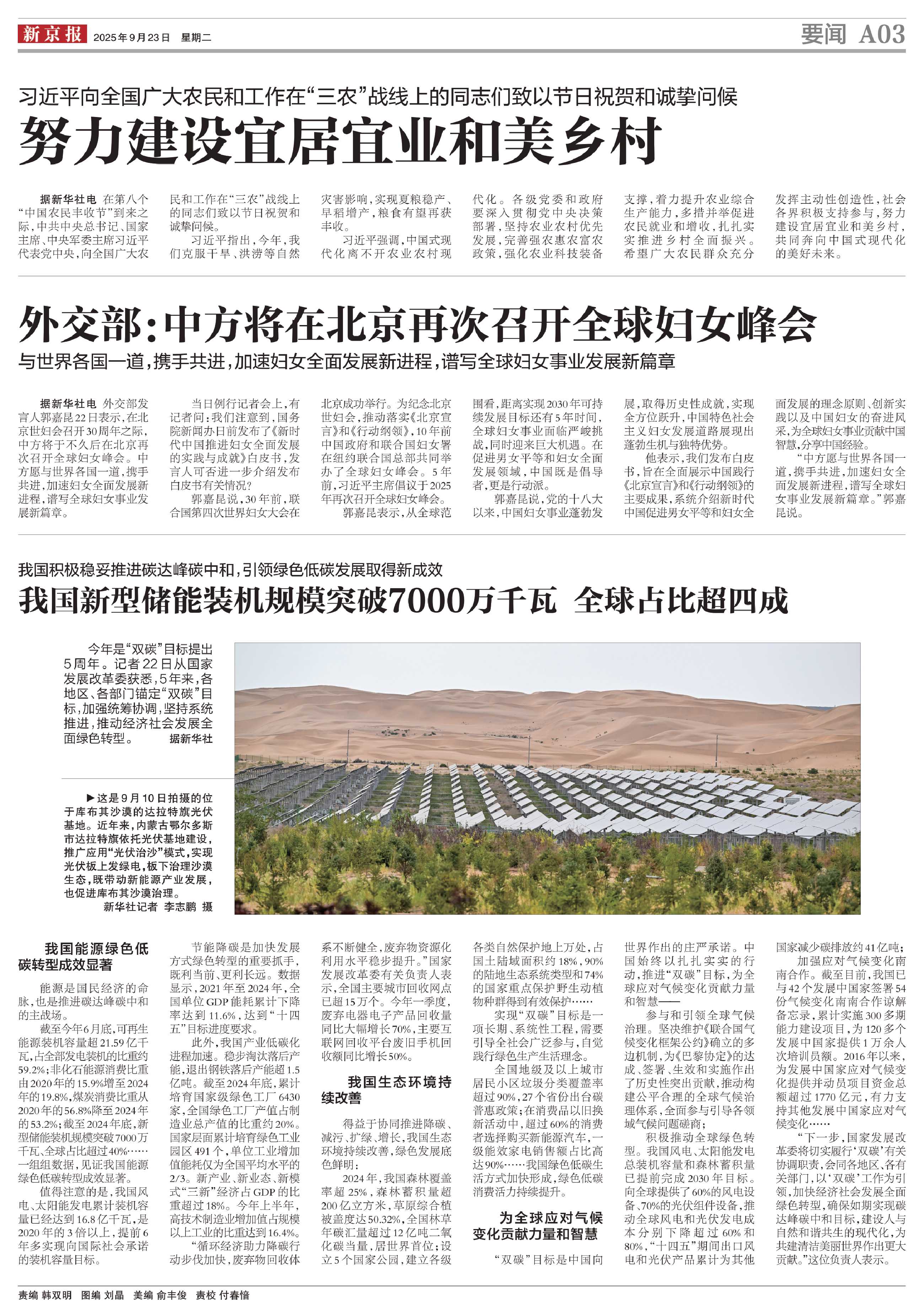 截至今年6月底,可再生能源装机容量超21.59亿千瓦,占全部发电装机的比重约59.2%;非化石能源消费比重由2020年的15.9%增至2024年的19.8%,煤炭消费比重从2020年的56.8%降至2024年的53.2%;截至2024年底,新型储能装机规模突破7000万千瓦、全球占比超过40%……一组组数据,见证我国能源绿色低碳转型成效显著。