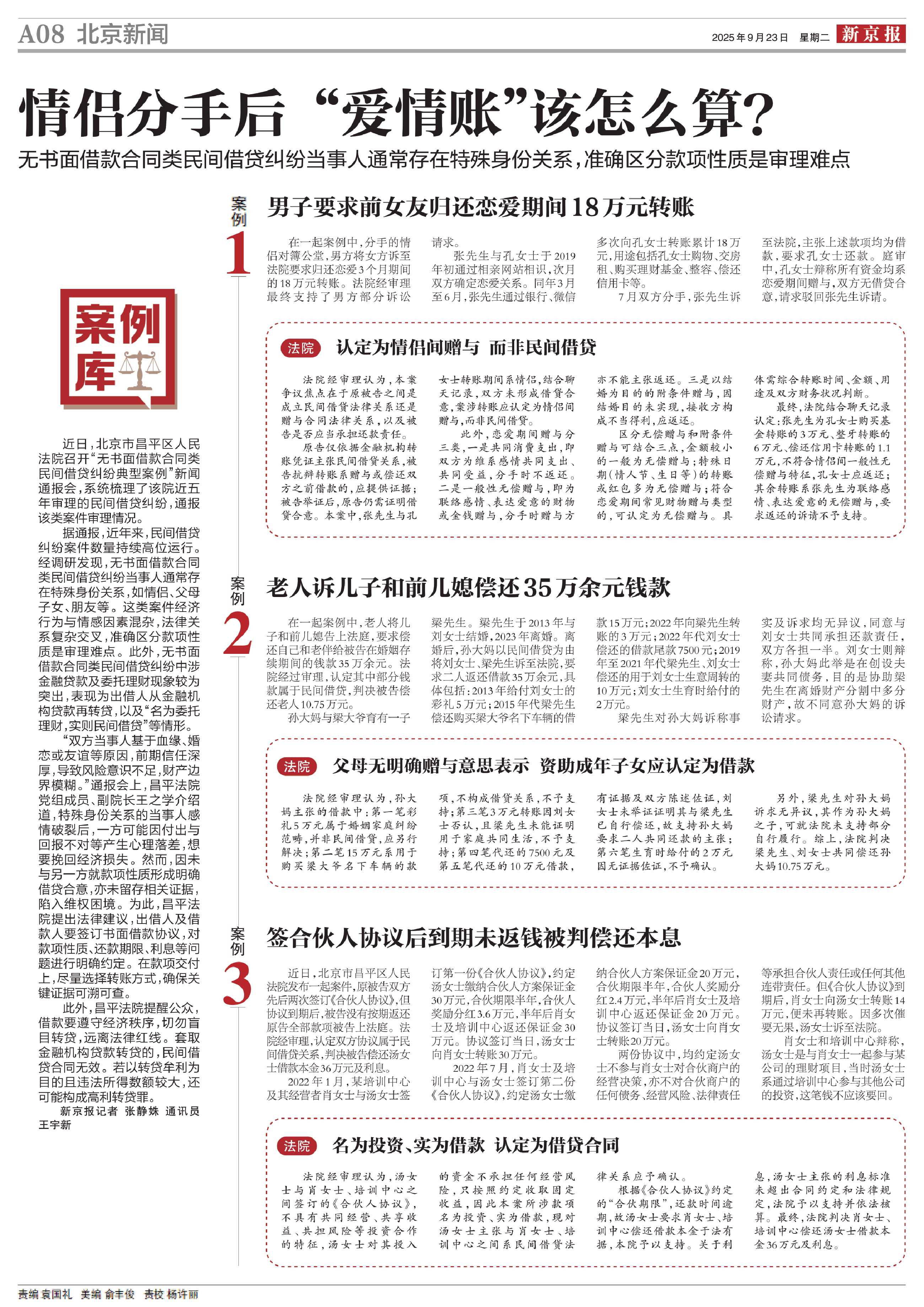 “双方当事人基于血缘、婚恋或友谊等原因,前期信任深厚,导致风险意识不足,财产边界模糊。”通报会上,昌平法院党组成员、副院长王之学介绍道,特殊身份关系的当事人感情破裂后,一方可能因付出与回报不对等产生心理落差,想要挽回经济损失。然而,因未与另一方就款项性质形成明确借贷合意,亦未留存相关证据,陷入维权困境。为此,昌平法院提出法律建议,出借人及借款人要签订书面借款协议,对款项性质、还款期限、利息等问题进行明确约定。在款项交付上,尽量选择转账方式,确保关键证据可溯可查。
