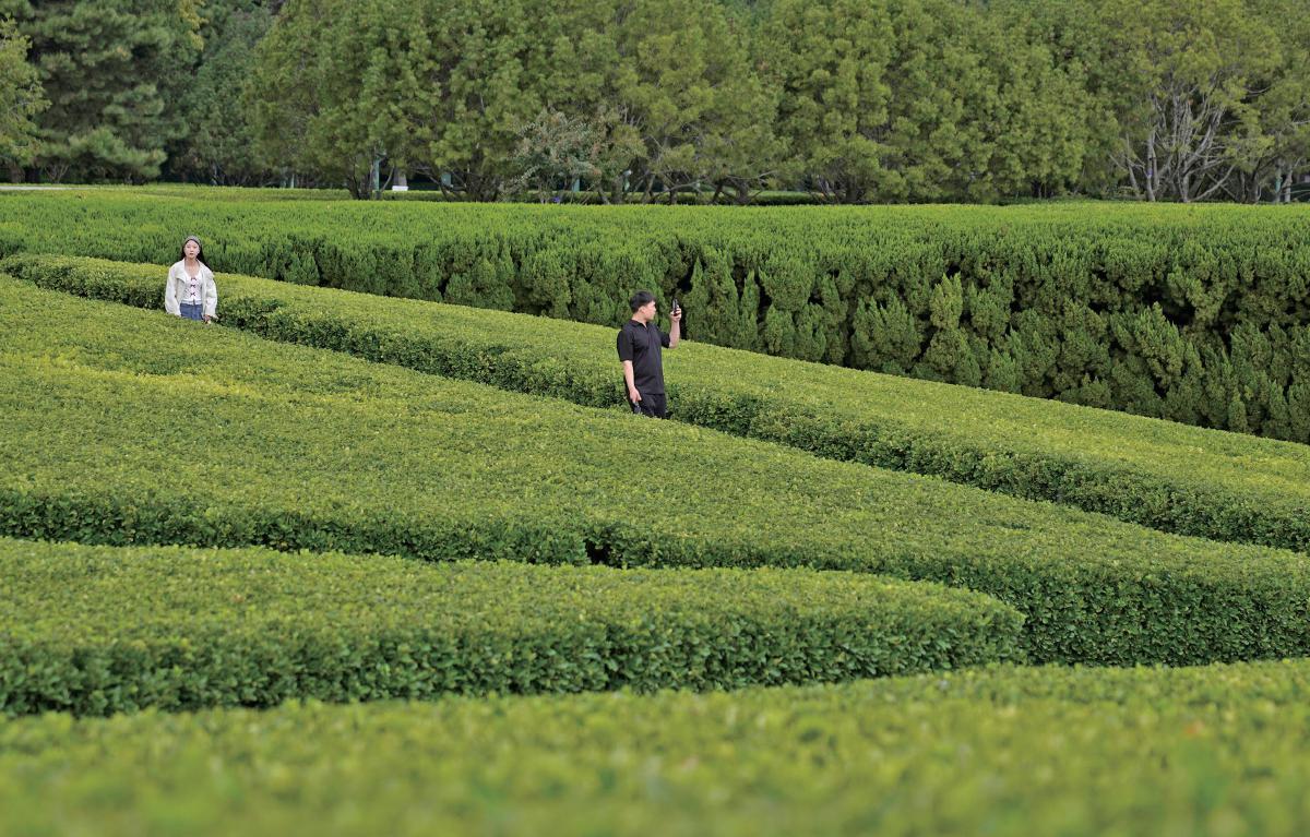 场景:游客走进一大片绿色园林,犹如闯进了一幅画中。 新京报记者 薛珺 摄