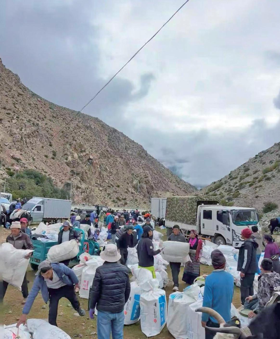 9月29日,西藏日喀则市定日县曲当镇珠峰东坡嘎玛沟进山处一片嘈杂。 受访者供图