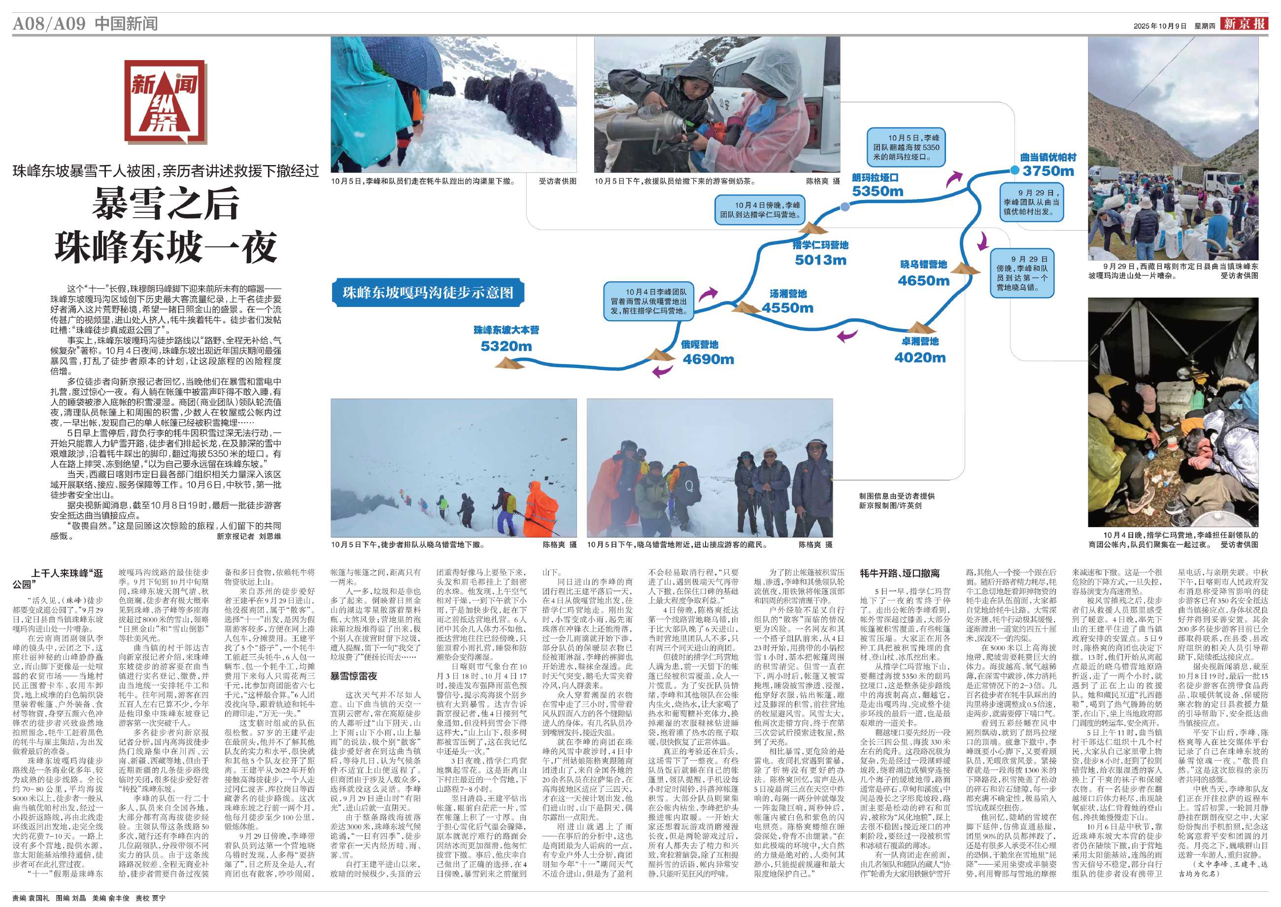 平安下山后,李峰、陈格爽等人在社交媒体平台记录了自己在珠峰东坡的暴雪惊魂一夜。“敬畏自然。”这是这次旅程的亲历者共同的感慨。