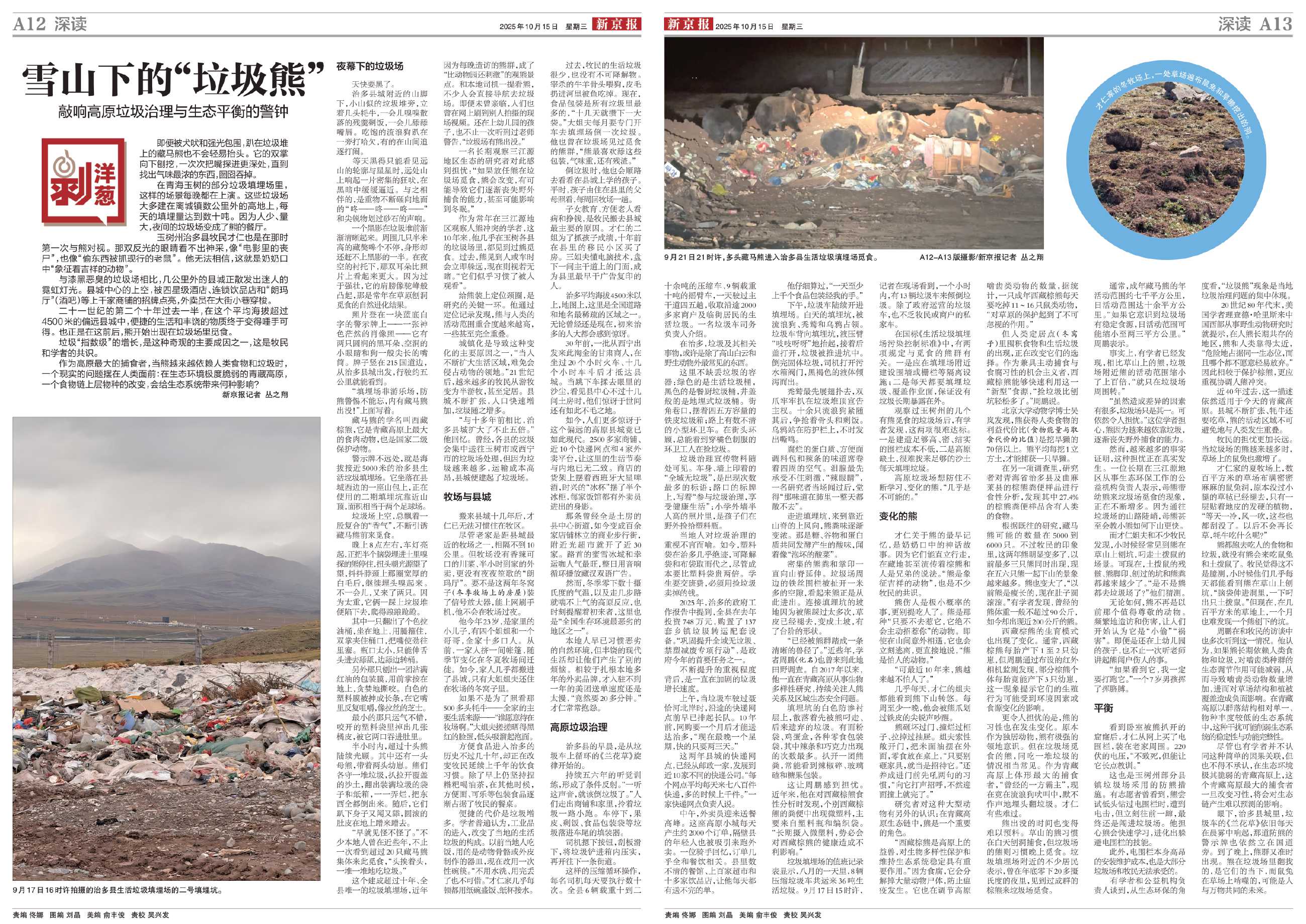 在青海玉树的部分垃圾填埋场里,这样的场景每晚都在上演。这些垃圾场大多建在离城镇数公里外的高地上,每天的填埋量达到数十吨。因为人少、量大,夜间的垃圾场变成了熊的餐厅。