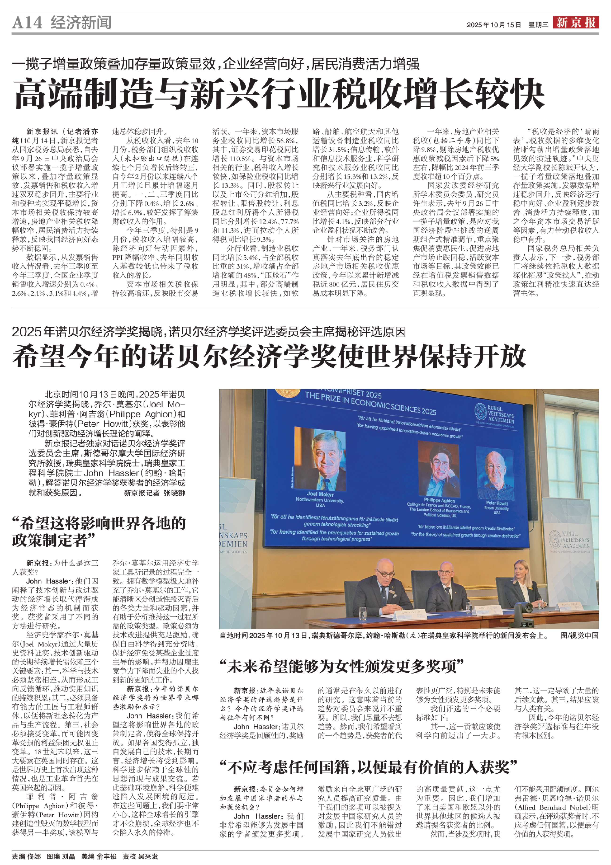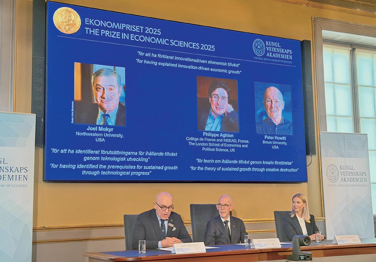 北京时间10月13日晚间,2025年诺贝尔经济学奖揭晓,乔尔·莫基尔(Joel Mokyr)、菲利普·阿吉翁(Philippe Aghion)和彼得·豪伊特(Peter Howitt)获奖,以表彰他们对创新驱动经济增长理论的阐释。
