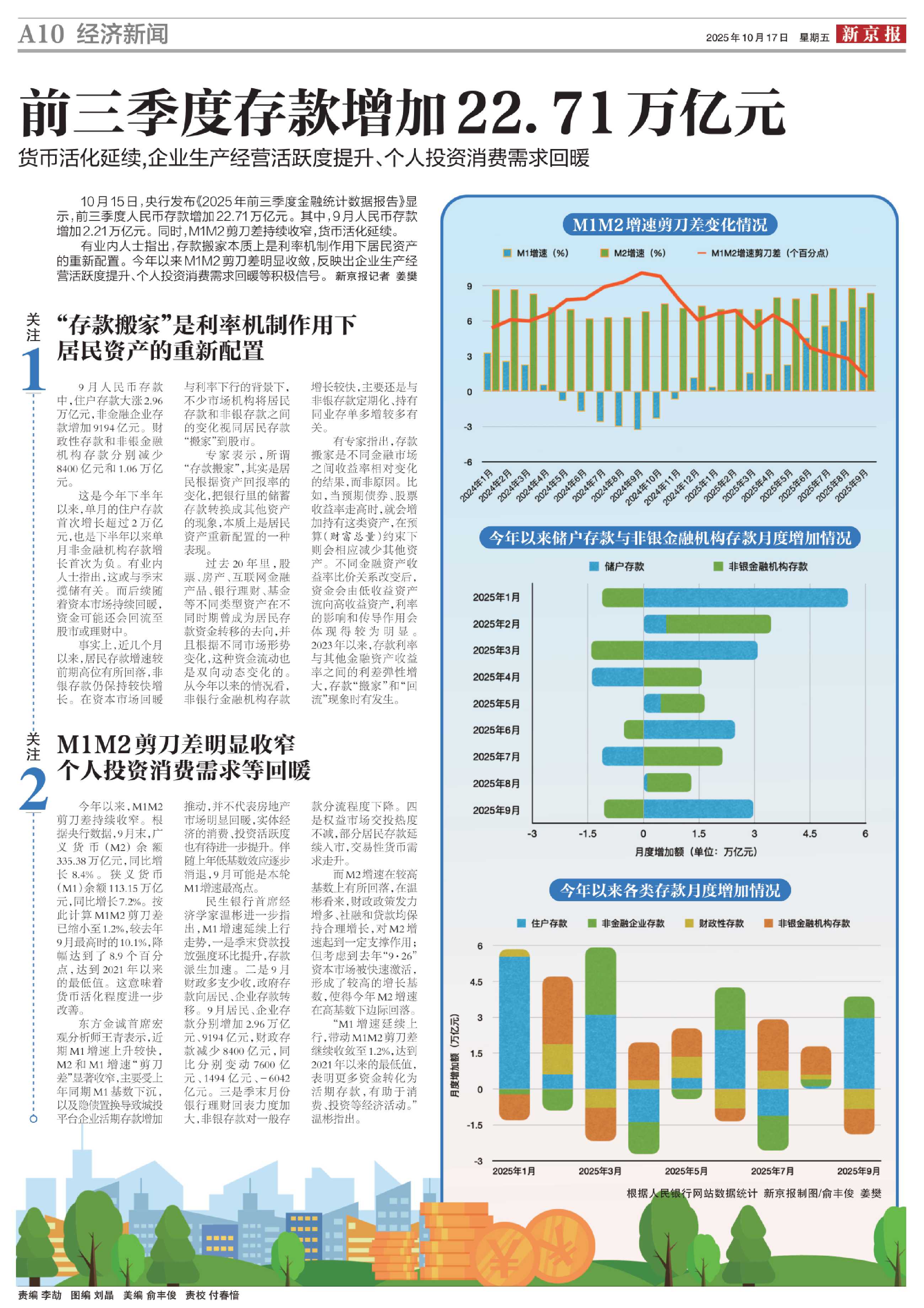 有业内人士指出,存款搬家本质上是利率机制作用下居民资产的重新配置。今年以来M1M2剪刀差明显收敛,反映出企业生产经营活跃度提升、个人投资消费需求回暖等积极信号。新京报记者 姜樊