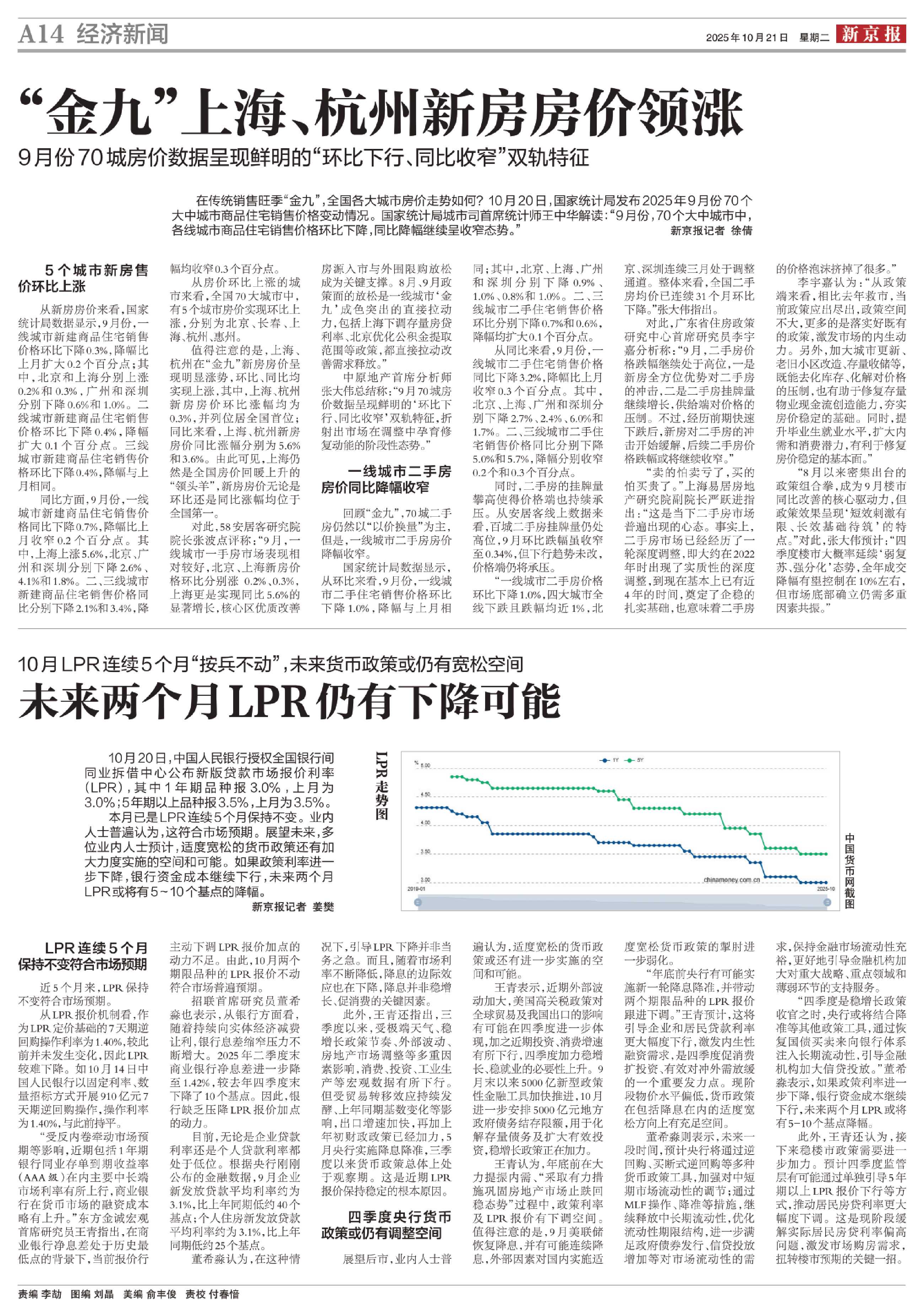 “受反内卷牵动市场预期等影响,近期包括1年期银行同业存单到期收益率(AAA级)在内主要中长端市场利率有所上行,商业银行在货币市场的融资成本略有上升。”东方金诚宏观首席研究员王青指出,在商业银行净息差处于历史最低点的背景下,当前报价行主动下调LPR报价加点的动力不足。由此,10月两个期限品种的LPR报价不动符合市场普遍预期。