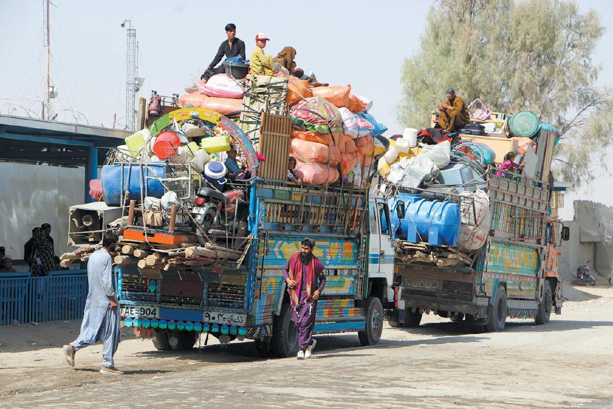 当地时间10月19日,阿富汗坎大哈省斯平布尔达克,阿富汗难民携带行李在阿巴边境返乡。 图/IC photo