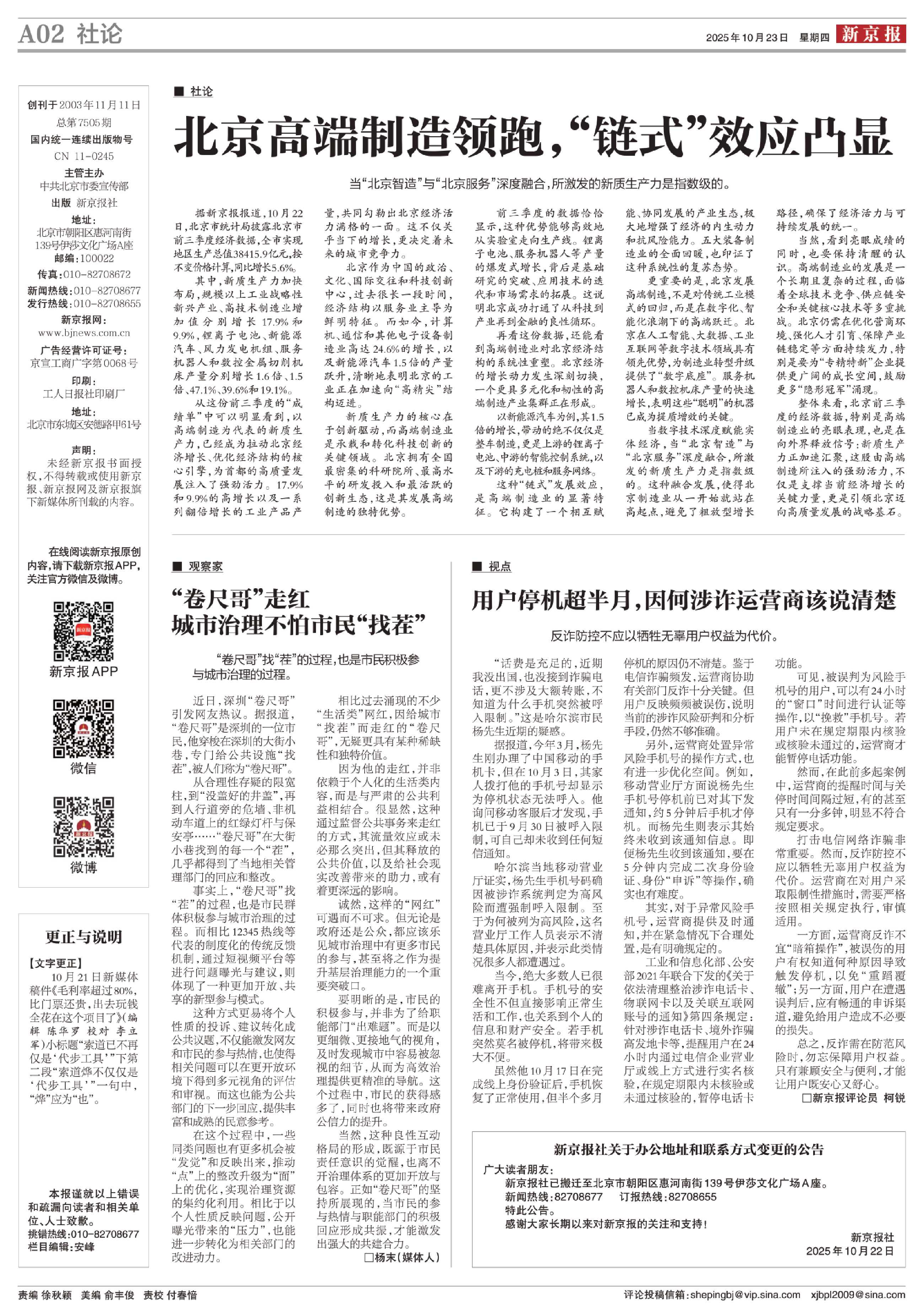 当然,这种良性互动格局的形成,既源于市民责任意识的觉醒,也离不开治理体系的更加开放与包容。正如“卷尺哥”的坚持所展现的,当市民的参与热情与职能部门的积极回应形成共振,才能激发出强大的共建合力。□杨末(媒体人)