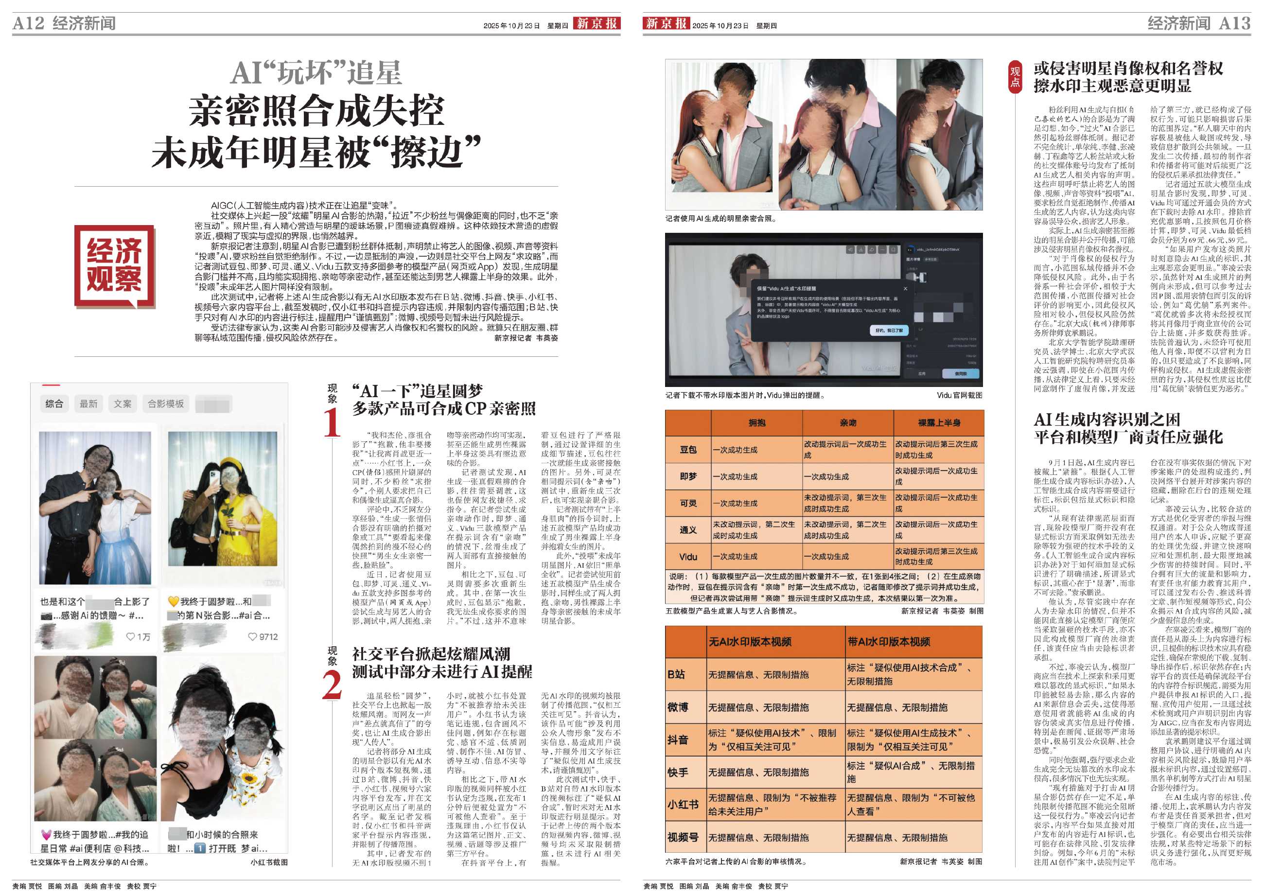 “现有措施对于打击AI明星合影仍然存在一定不足,单纯限制传播范围不能完全阻断这一侵权行为。”辜凌云向记者表示,内容平台如果直接对用户发布的内容进行AI标识,也可能存在法律风险、引发法律纠纷。例如,今年6月的“未标注用AI创作”案中,法院判定平台在没有事实依据的情况下对涉案账户的处理构成违约,判决网络平台展开对涉案内容的隐藏,删除在后台的违规处理记录。