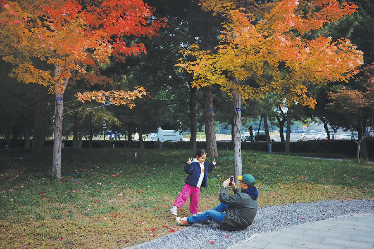 场景:小朋友在秋色间留影。