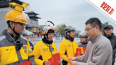 近日,河南许昌4位外卖小哥救下一对轻生情侣,救人视频在网络走红后,有网友调侃“秦始皇拉着茶壶救人”,对此外卖小哥李先生表示,独特造型是为了给自己和顾客增添乐趣。