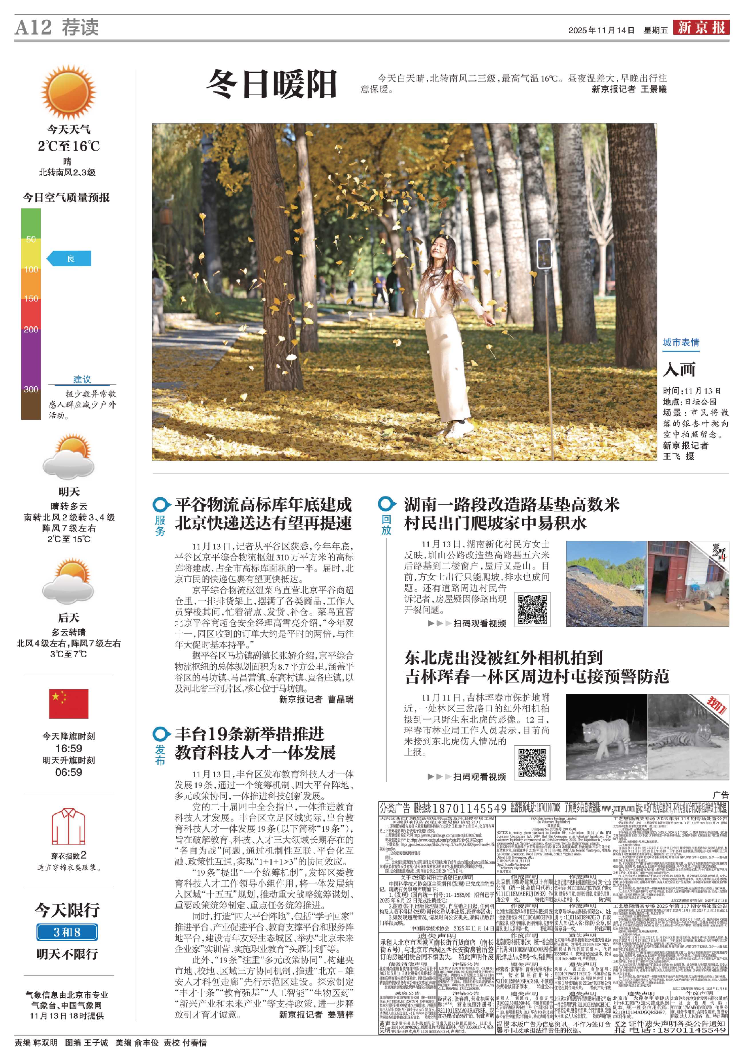 此外,“19条”注重“多元政策协同”,构建央市地、校地、区域三方协同机制,推进“北京-雄安人才科创走廊”先行示范区建设。探索制定“丰才十条”“教育强基”“人工智能”“生物医药”“新兴产业和未来产业”等支持政策,进一步释放引才育才诚意。 新京报记者 姜慧梓